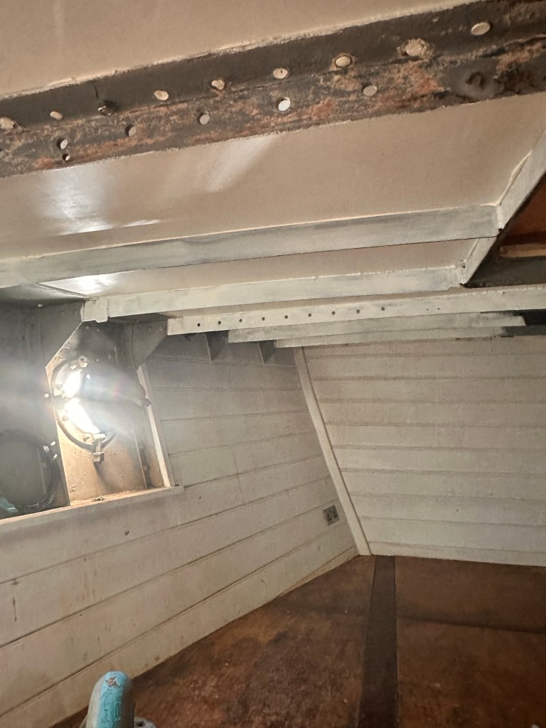 4) what it was built for then, and what we want to use it for now. As a working fireboat the emphasis was on a solid deck, all 3 inches of it. It didn’t matter if there was the occasional drip down into the boat. But when you might be sleeping on it and don’t want the floating garage look on the interior, it very much does. Different priorities.