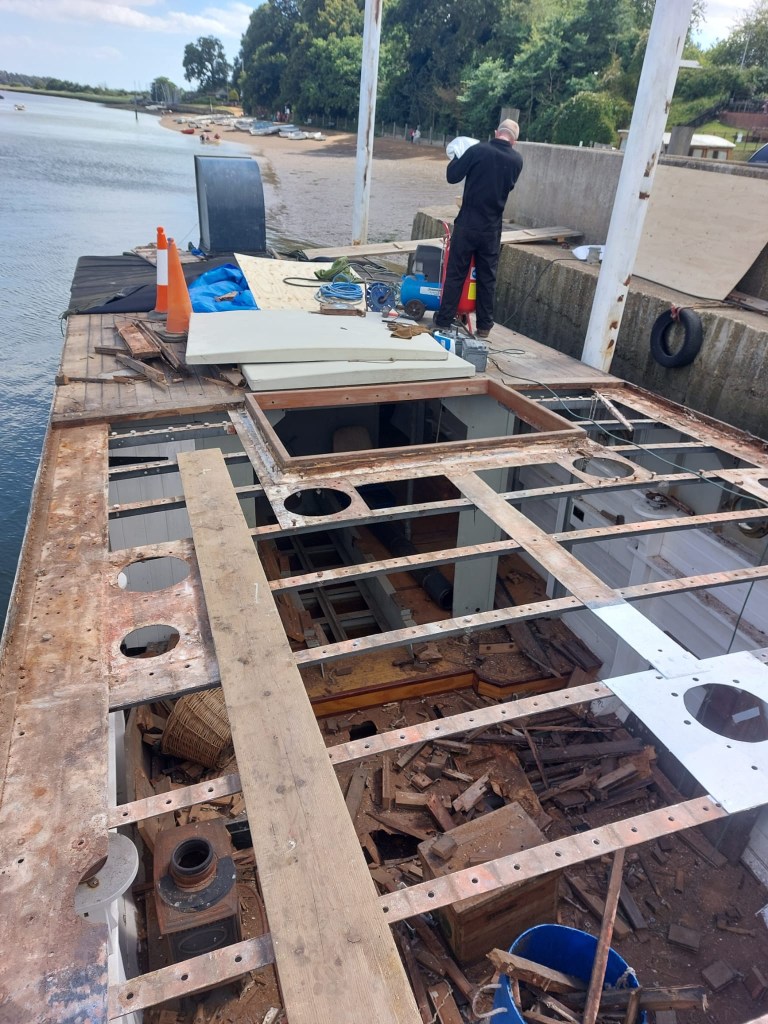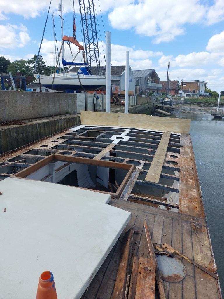 Well… funny you should ask, as I’ve finally got an update. It’s been a year (A WHOLE YEAR!) and another baby since the last post and the whole boat strategy has changed. Gone is the DIY option and I have put the boat in the capable hands of Woodbridge Boatyard. Phase one and deck one is now complete.