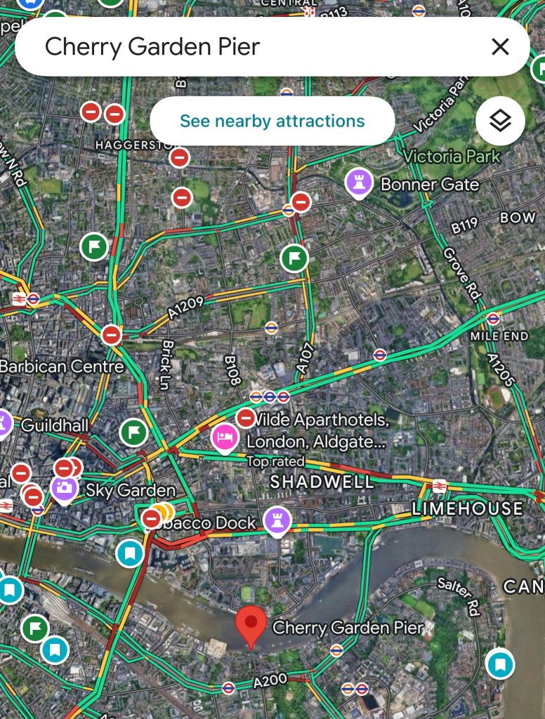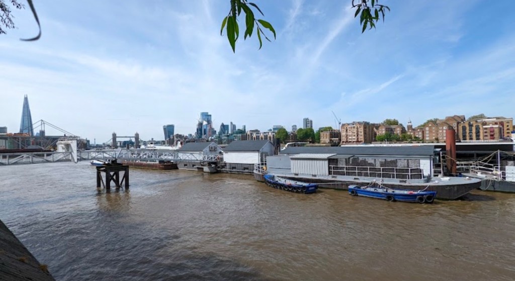 Beta III was stationed at Cherry Garden pier, north of Bermondsey just east of Tower Bridge on the south bank of the Thames. Ive whizzed up that stretch a fair few times on a Thames Clipper but always been looking out of the wrong window at the wrong time. Not so this trip…