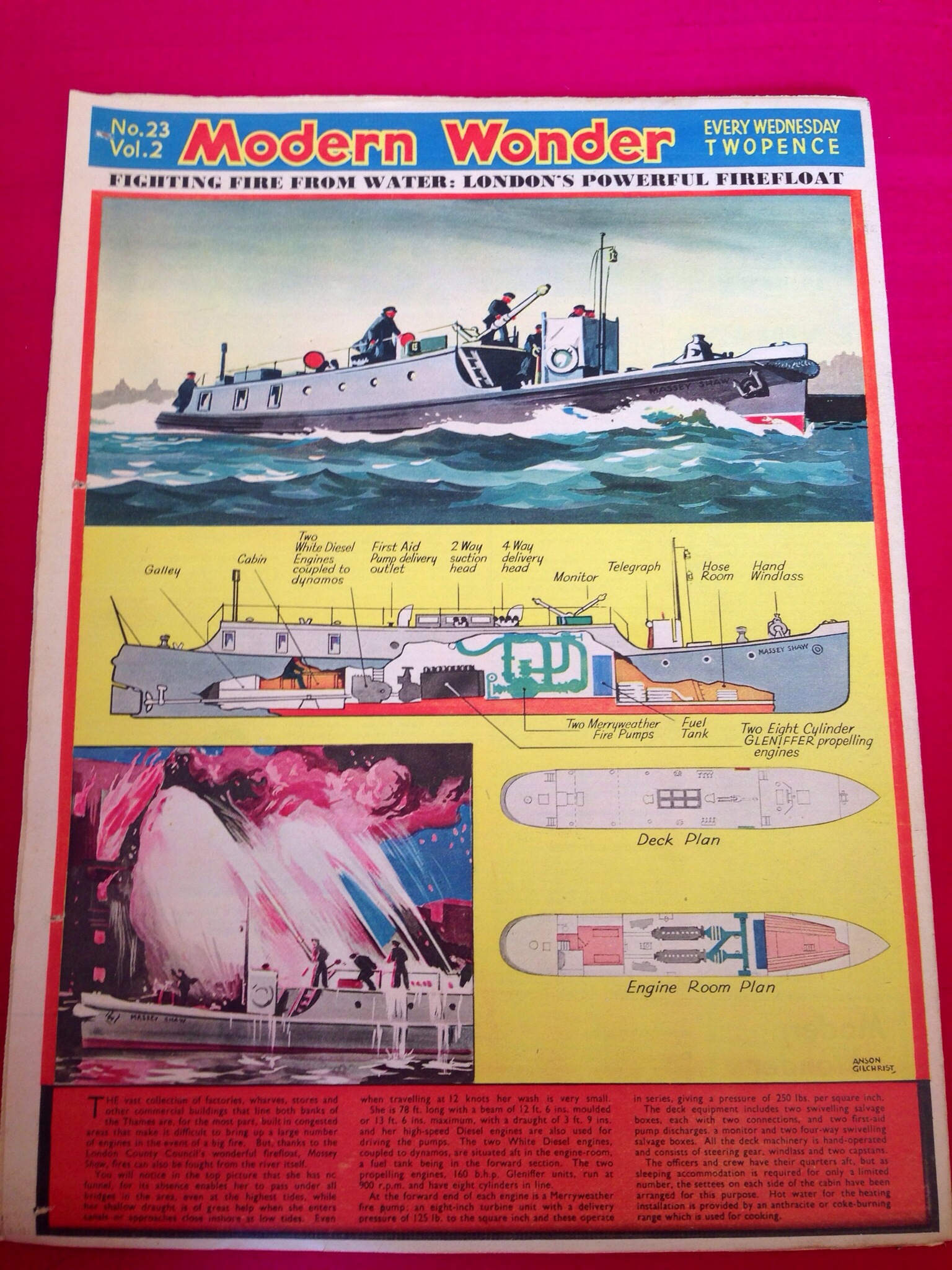 Through the power of eBay (remember that’s how I ended up in this mess in the first place!), I found a magazine from 1937 about fire boats. Turns out the focus is on the Massey Shaw rather than Beta III but interesting nonetheless.