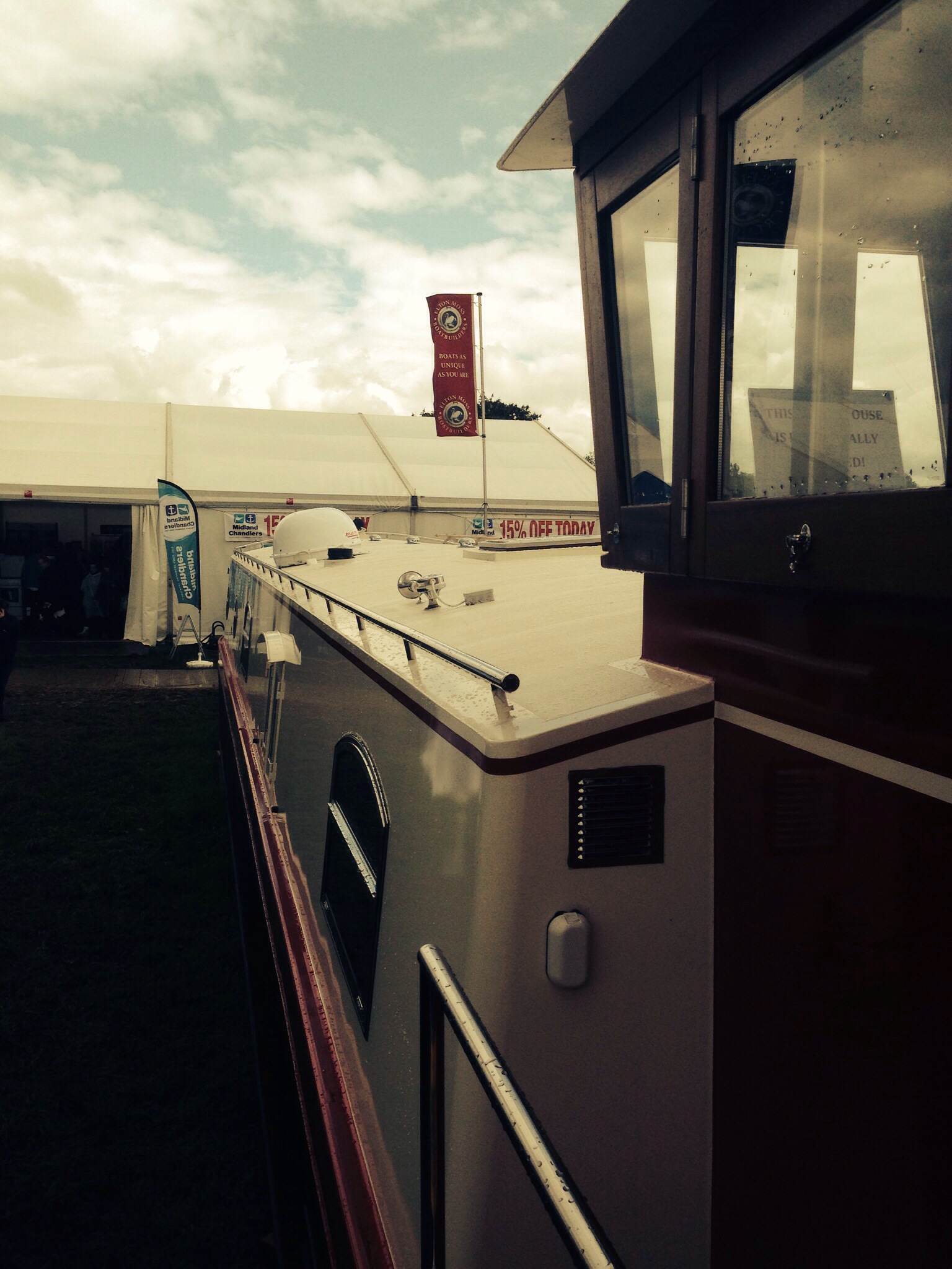 Today’s outing to the Crick Boat show started badly. Horrific traffic on the M1 followed by an ominously purple sky turning the field into a mud bath. After a trip to the real ale rent things were looking up.