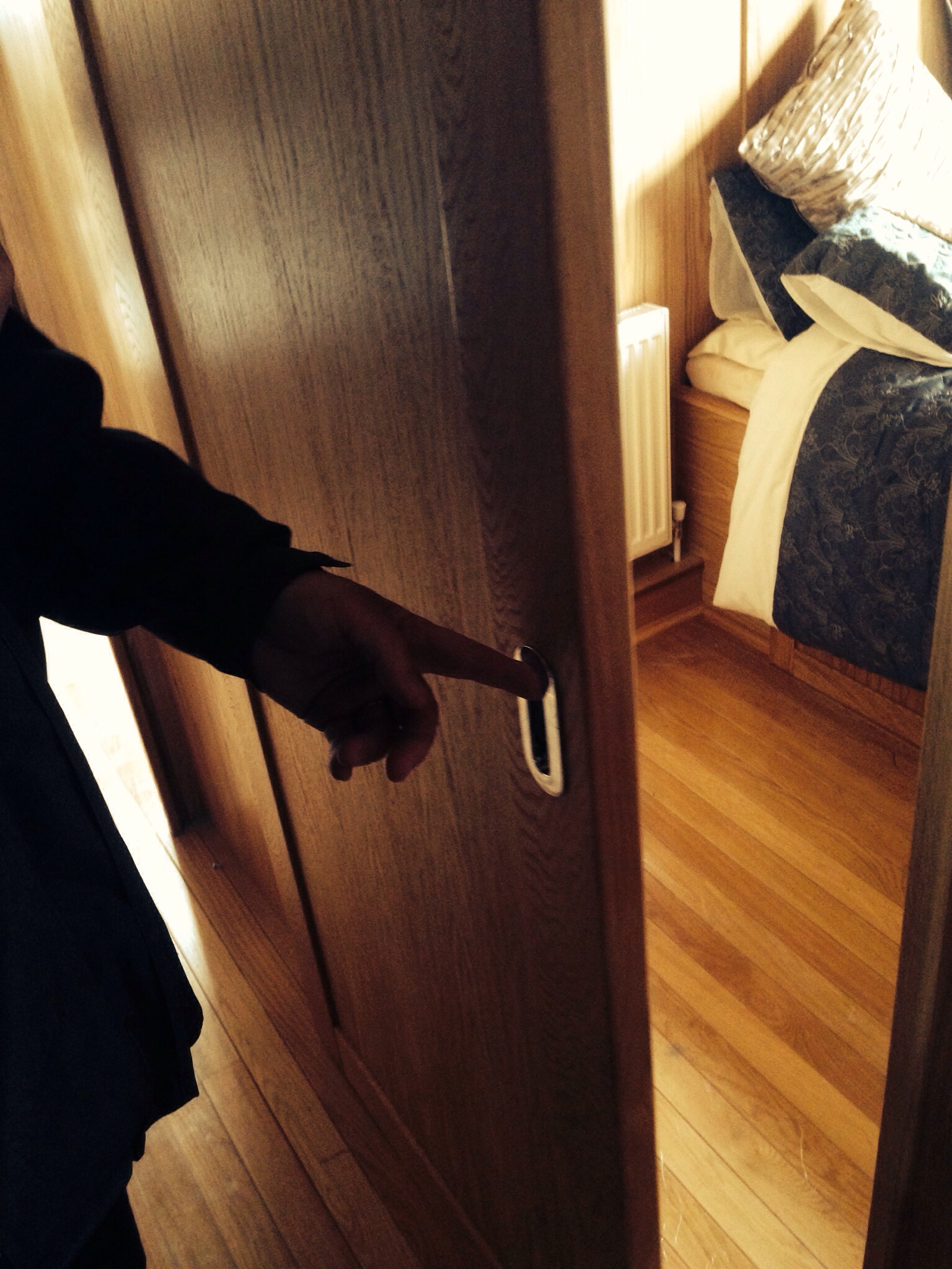 TO FORGET: built in bedside tables and acres if glossy woodwork