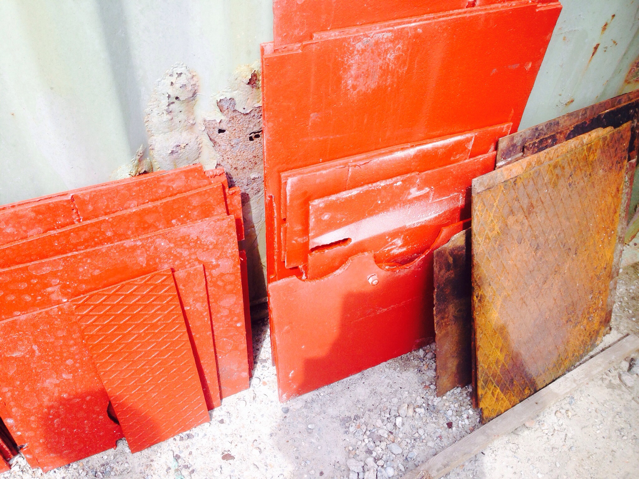 The final job was the blasting of the plates that make up the floor of the engine room. I know I keep banging on about this but isn’t Shotblasting amazing? From crappy cruddy rusty metal to really quite passable. Again, very tempting to zap all your possessions.