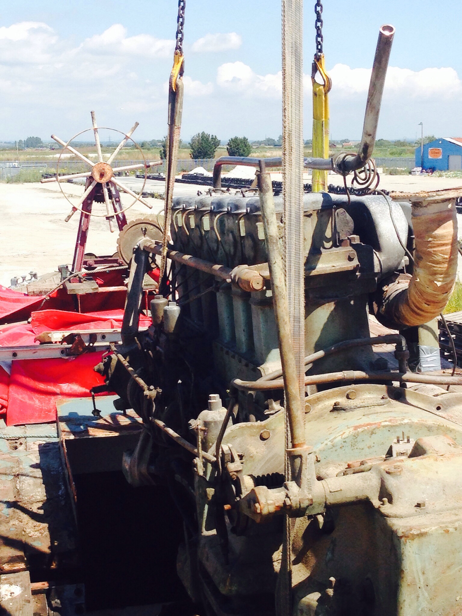First the hatch was removed revealing the engine lurking in the depths of the boat.