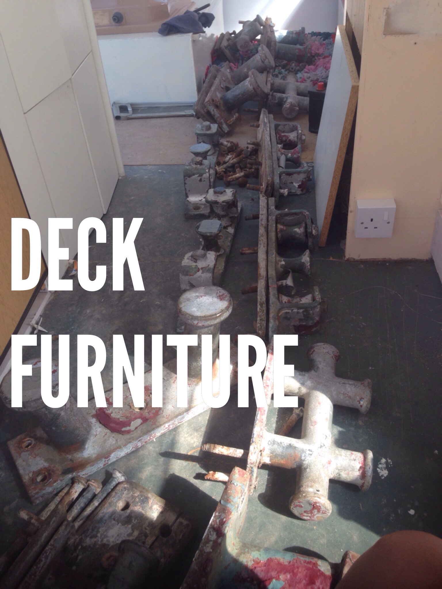 Today involves sitting watching the carpenters hard at work while waiting for the welders to arrive. Glorious sunshine in Rye and I have fashioned a sun lounger out of some pallets. A good opportunity to provide an update of some of the things I have found and removed from the boat…