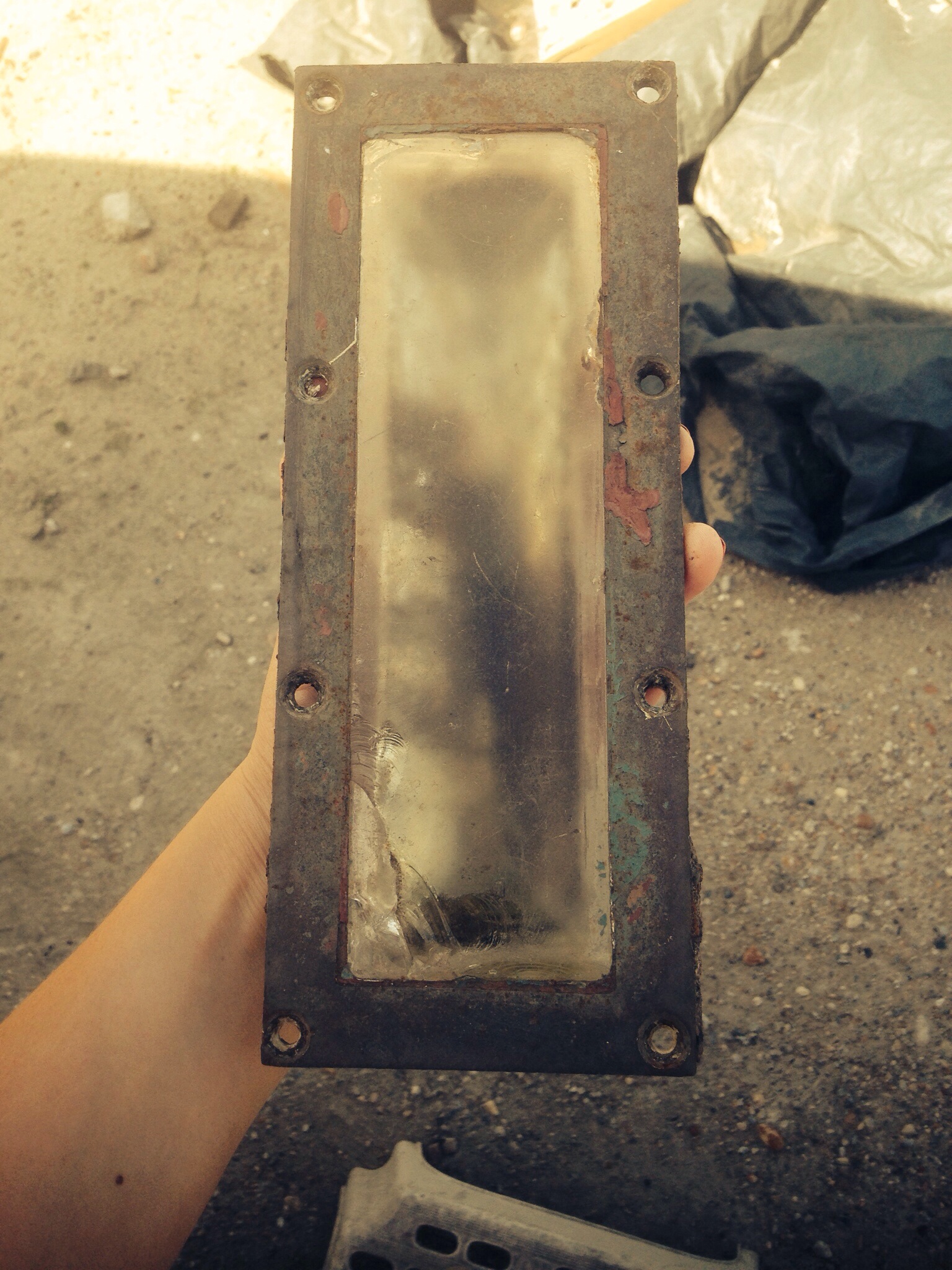 Finally, I unscrewed the deck prisms with my own fair hands. Four in total, two larger minus any glass and two smaller with still some slightly chipped glass in place.