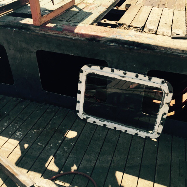 Not very easy to see, but the new sheet is in place to cover the gap where where the deck was raised and the holes have been cut for the windows. Starting to take shape ๐