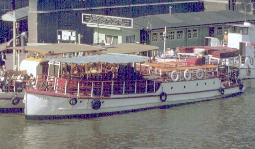 A further close up (thanks again Ben!) where you can see that the deck has been lowered for this stage of her life operating as a tour boat. There as also some rather striking railings around the edge and to hold up the canopies.i am pretty sure that the railing at the front of the raised deck holding the back of the canopy was still there when I first got hold of her.