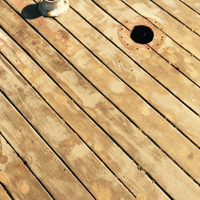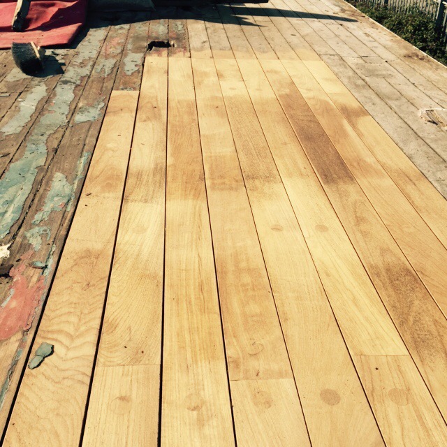 Parts of the deck have been lightly sanded to check on the quality of the wood underneath and to see how it will come up when finished. It still needs a bit of elbow grease but the signs are all good and it looks like it won’t look too different to the new section.