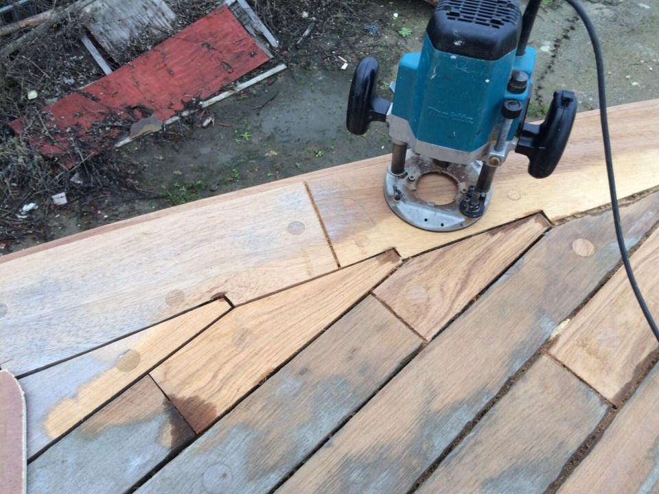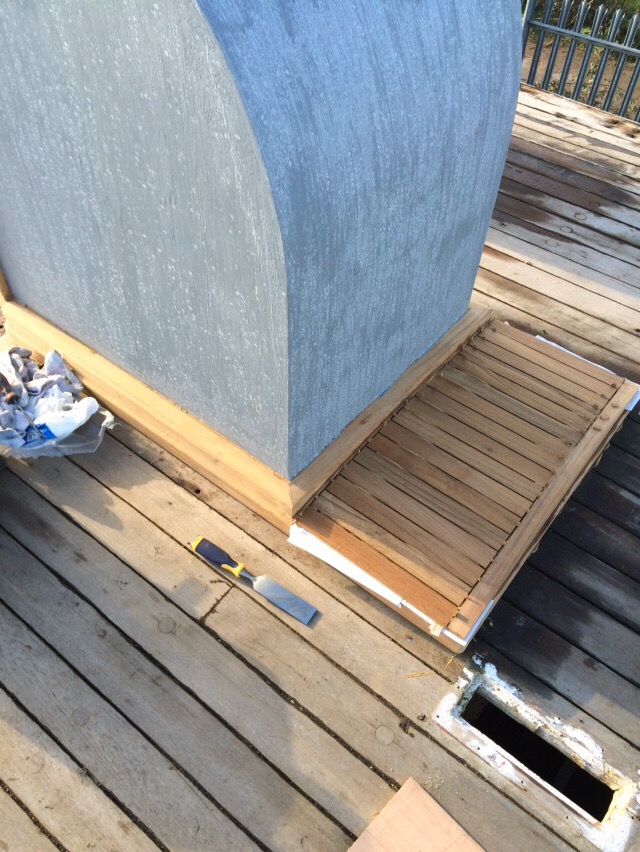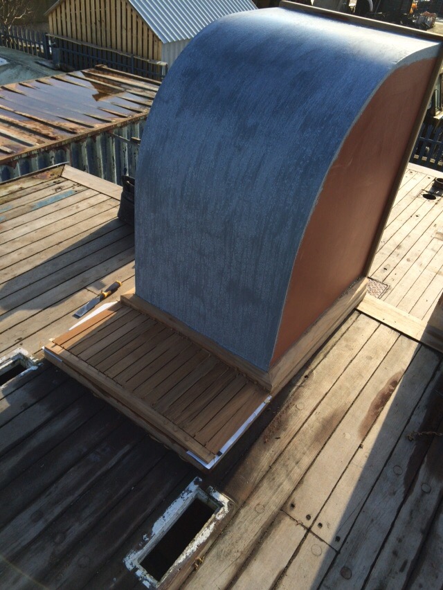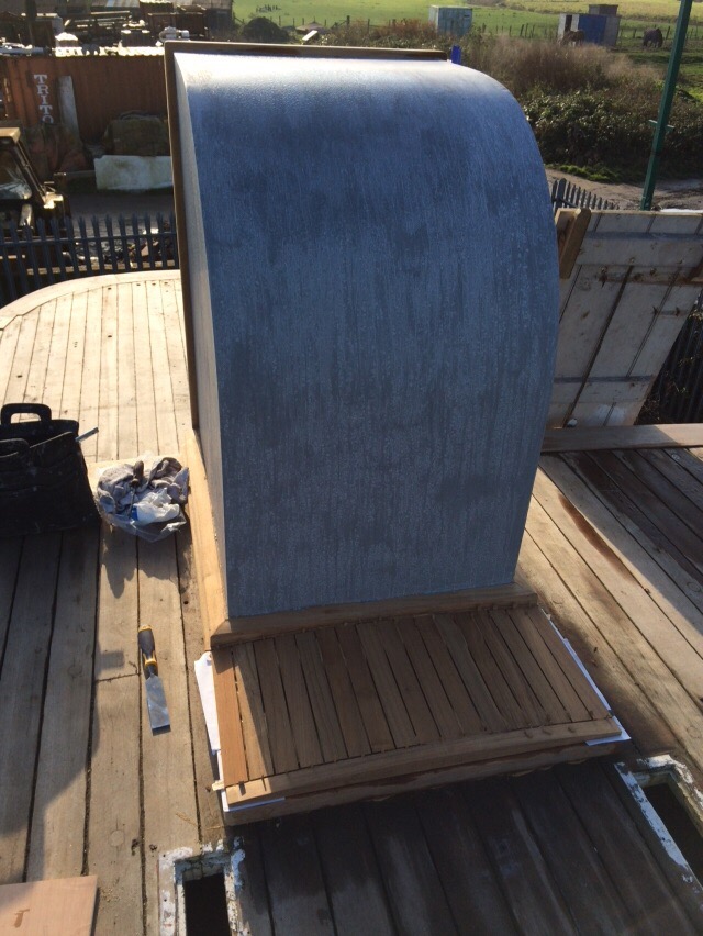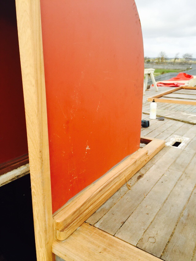 Finally all the fiddly bits have been taken care of. The nosing at the edge of the top deck, and all the framing round the hatch. The rule of thumb here being to create the edgings so that any water runs away off the deck rather than pooling around joins.