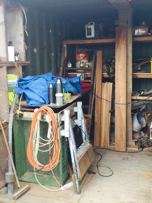 Like many temporary solutions, this one is actually pretty darn sturdy and should last a fair while. Ply and wood frames were created and some dust sheets stretched over them. The whole lot was then painted with some brand of primer from Hempel that had been accidentally purchased. They are now water tight and also pretty darn tough. They sit over the hatches and are battened down from the inside, keeping the water out and with no flapping edges to catch the wind and start rubbing against things – the constant problem with the lofty tarps.