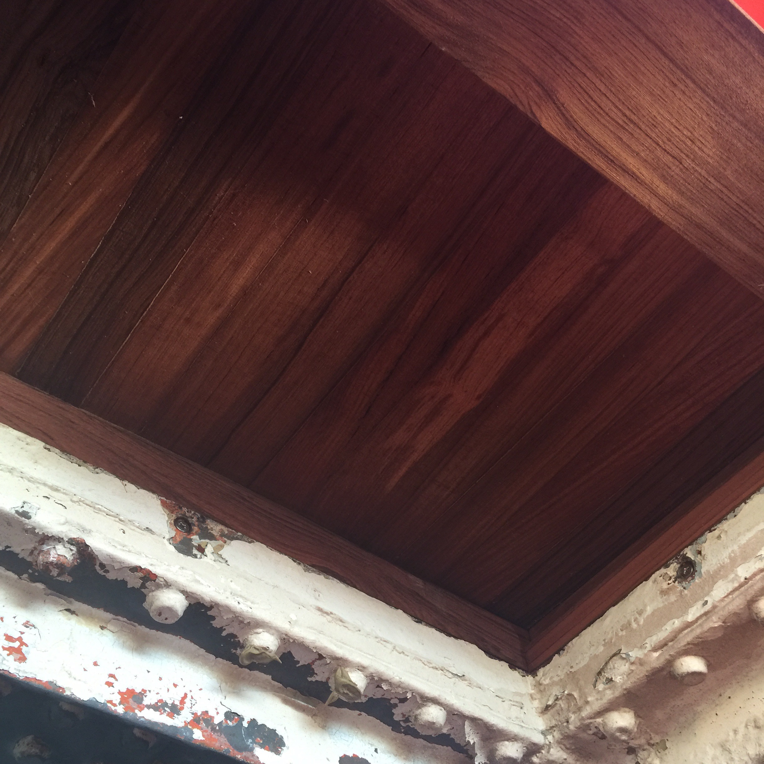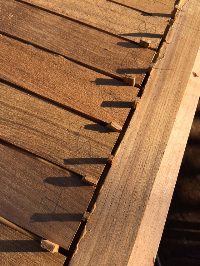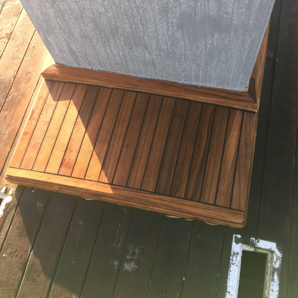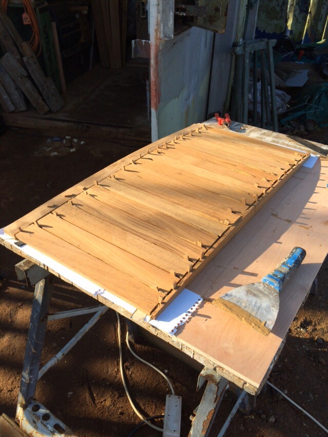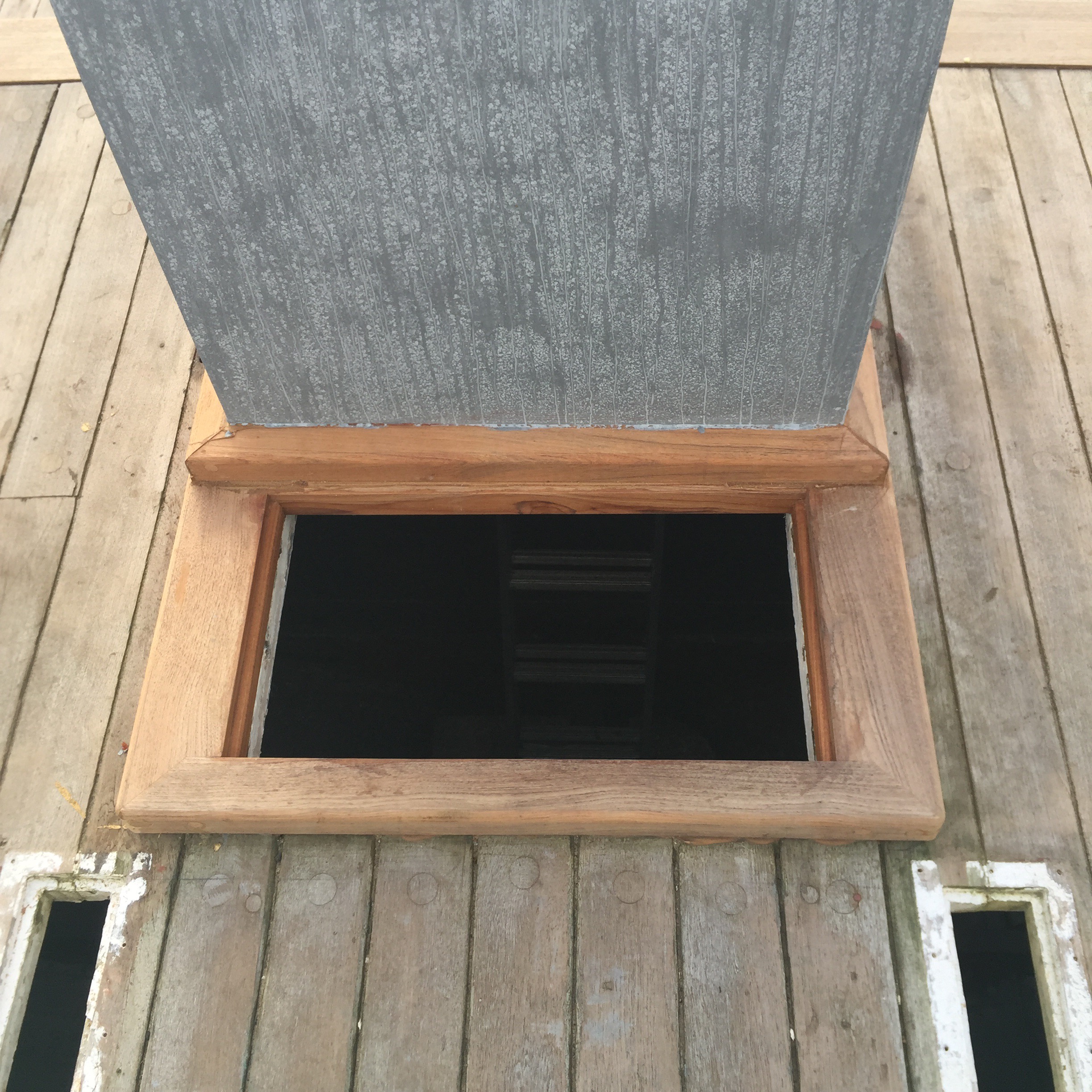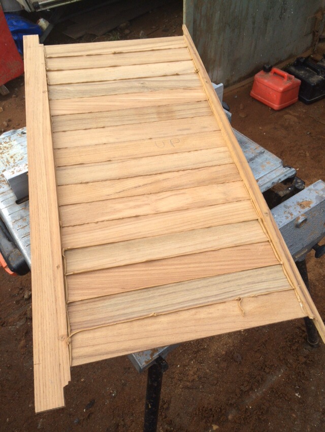 Next all the hatches now have edges. The upstand up bit is also to prevent any water running into the boat and to make it easier to attach any eventual covers. This was probably one of the more challenging bits of logistical carpentry for Ian. The teak is all bought in running lengths which means you don’t get any control over the different sizes and then have to patchwork together the different lengths to make sure you have enough long bits for the long bits – particularly the large hatch surrounds – and not too many unusable short bits left over all while remembering what you’ve got, what you’ve used and what you’ve still got to do. I’m just glad I didn’t have to keep tabs on it!