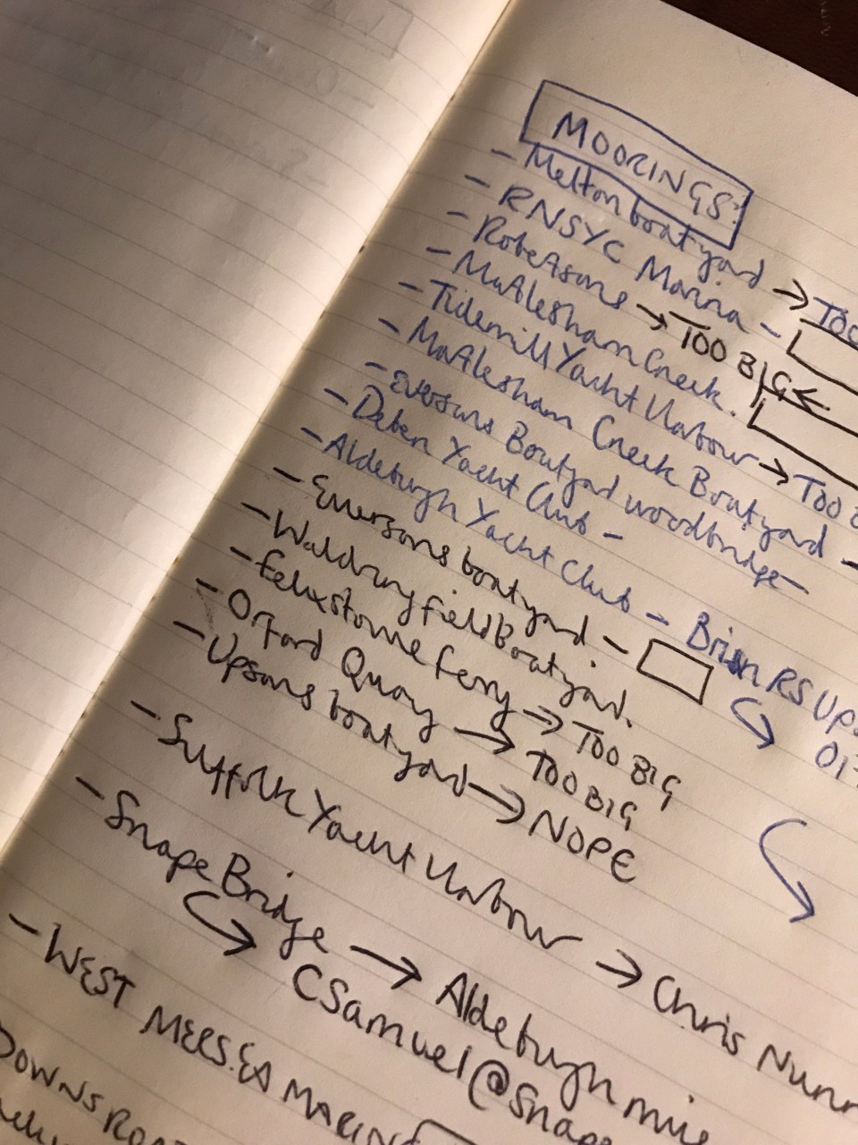 The deck continues to be a pain…. the hot summer was not it’s friend with gaps opening up in the teak and a lot of leakage which damaged the floor below. We’ve tarped it over for the winter which doesn’t look great but will allow us to look afresh in spring and reassess what needs to be done and where the water is coming in. The launch has also been pushed to spring as, on balance, there was no advantage to being in the water earlier as the won’t use it as much over winter and it only increases the potential maintenance. She’s happy in Ipswich for the time being until he can make the big move to Fambridge in the spring.