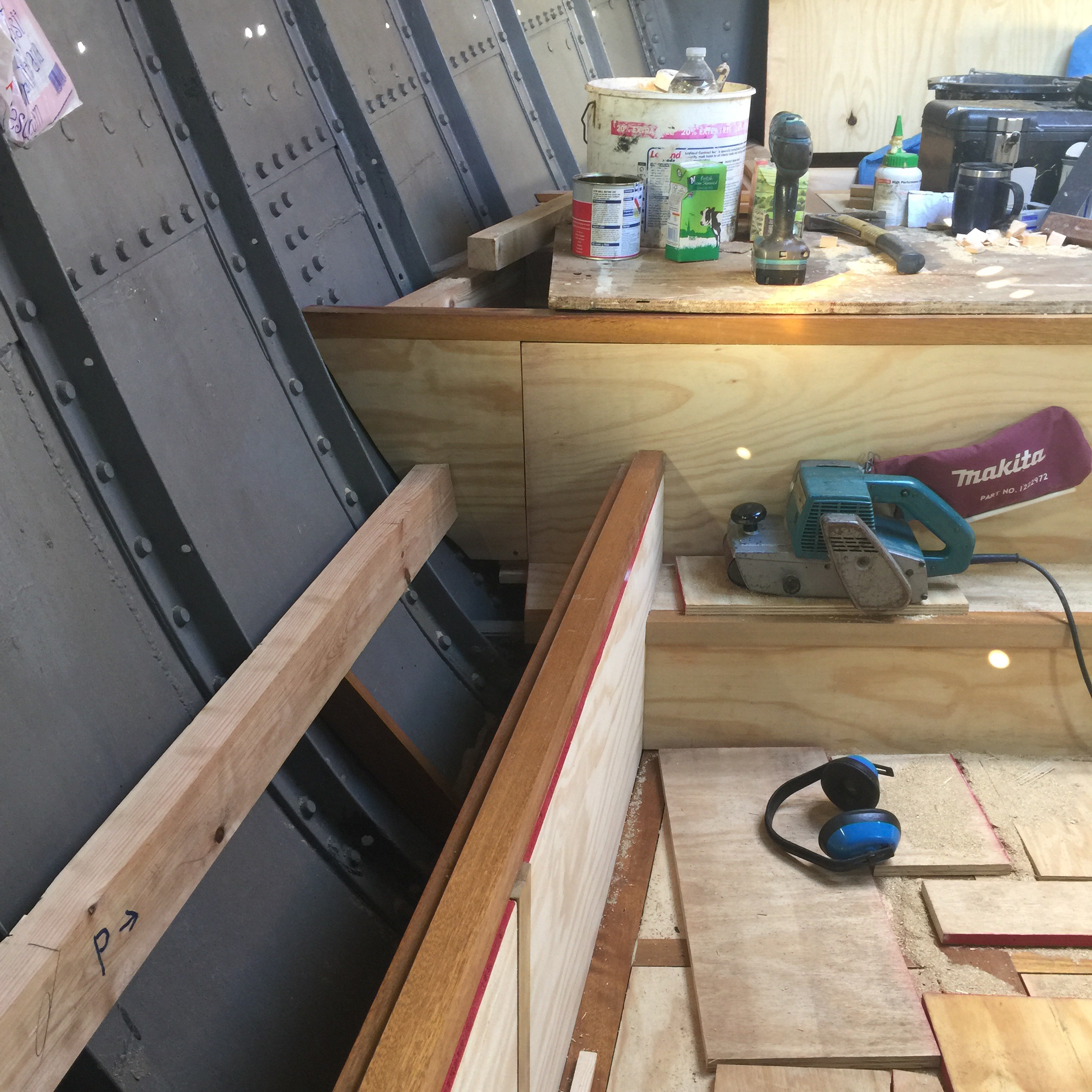 Things have been happening at the boat. Not by my hand but through the sterling work of tom and Ian. We are a bit light on photos but to summarise, the galley has had the paint removed from the ceiling with elbow grease and a heat gun. Not the best job as you have to stand with your arms in the air for hours and the paint goes everywhere. In the main cabin, the wood has arrived and Ian is starting on the floor. As this is the biggest space, it’s going to make a massive impact and make it look finished.