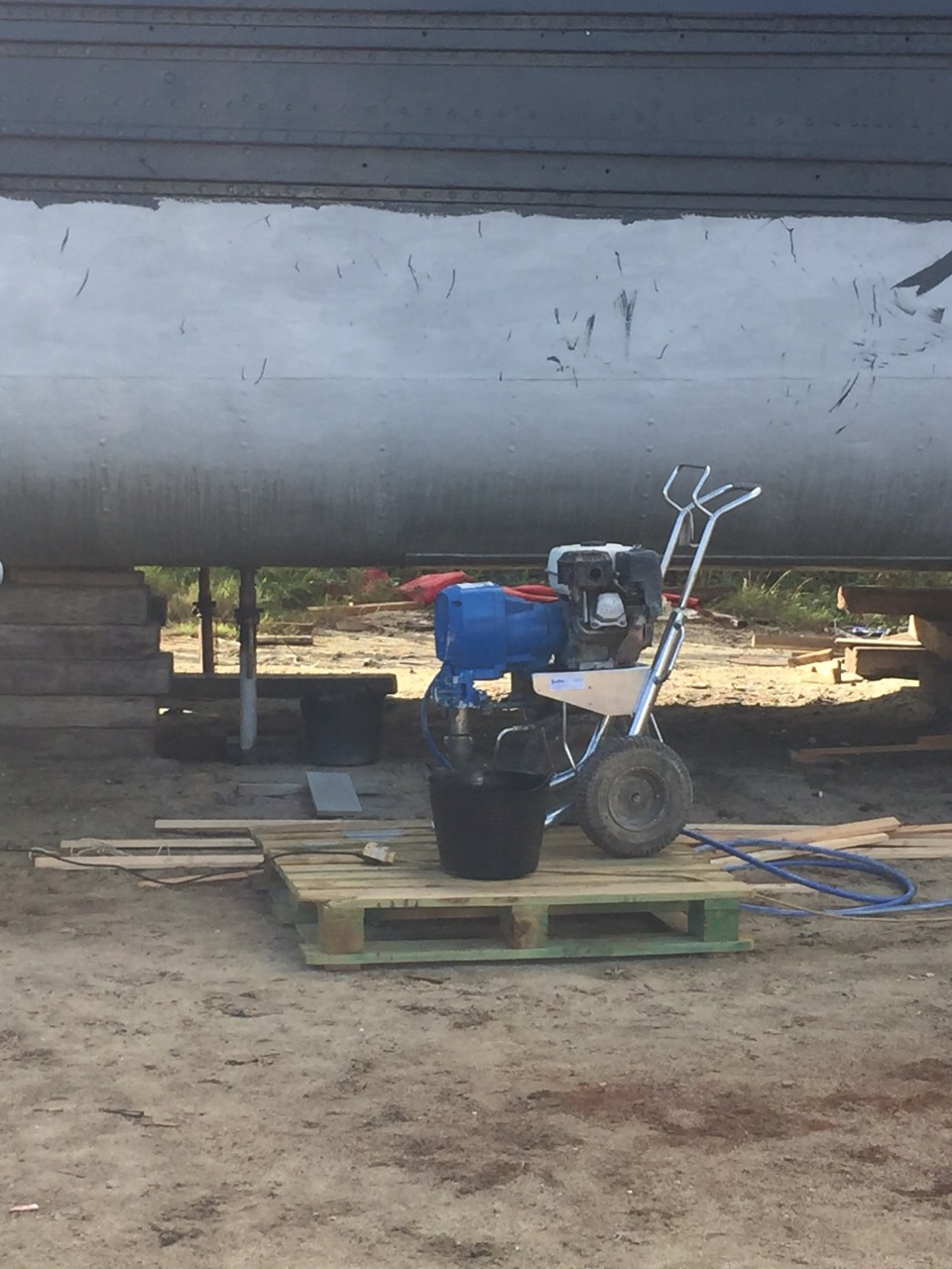 Change of tactic for spraying the rest of the inside of the boat. Away with the brushes and in with the airless paint sprayers. Advantages are that it is quick. And by quick we meant super speedy. Disadvantages is that used incorrectly you could give yourself a nasty jotamastic tattoo and if you don’t have the pressure and thinners correct you can eat through a lot of paint.